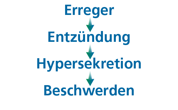Typischerweise läuft eine Erkältung nach einem bekannten Muster ab: Viren – meist Rhinoviren – infizieren die Schleimhäute, wodurch eine Entzündungsreaktion ausgelöst wird. Diese führt zu vermehrter Schleimbildung und damit den bekannten Symptomen wie Schnupfen, Husten oder Druckkopfschmerz.
