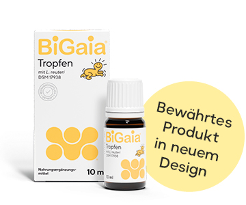 Mit dem Vertriebswechsel werden BiGaia® Tropfen in einem modernisierten Verpackungsdesign ausgeliefert. Die bewährten Rezepturen bleiben unverändert – pro Tagesdosis sind weiterhin 100 Millionen lebende L. reuteri DSM 17938 enthalten.