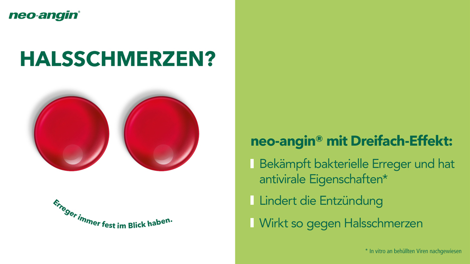 Halsschmerzen? neo-angin® hat Erreger im Blick |