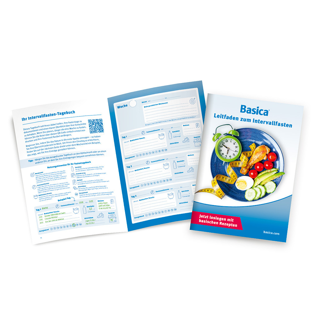 Beim Intervallfasten können durch den Abbau von körpereigenem Fett Ketosäuren entstehen, die den Stoffwechsel belasten können. Die Broschüre erklärt, wie basische Lebensmittel den Säure-Basen-Haushalt im Gleichgewicht halten können. Hier setzen die verschiedenen Darreichungsformen von Basica an: Besonders praktisch für Intervallfastende sind beispielsweise die basischen Mikroperlen Basica Direkt als Stick, die die tägliche Ernährung sinnvoll ergänzen können. Das Nahrungsergänzungsmittel unterstützt mit Zink den normalen Säure-Basen-Stoffwechsel und kann ohne Wasser eingenommen werden.