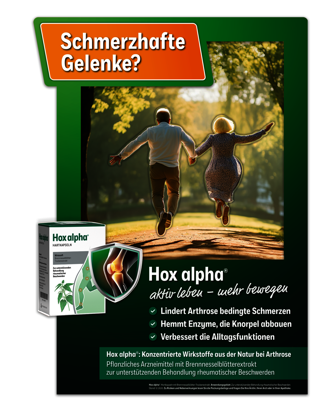 Der Tag der Arthrose am 12. Oktober 2025 rückt eine der häufigsten chronischen Gelenkerkrankungen in den öffentlichen Fokus. Millionen Menschen in Deutschland sind betroffen, und viele suchen gezielt in der Apotheke nach Rat und geeigneten Produkten zur Linderung ihrer Beschwerden. Zur Unterstützung der Beratung bietet Strathmann einen aufmerksamkeitsstarken HV-Aufsteller für den pflanzlichen Zytokinhemmer Hox alpha® mit hochkonzentriertem Brennnesselblätter-Extrakt. Der kompakte Aufsteller ist speziell für die Platzierung im Bereich der Sichtwahl am HV-Tisch konzipiert und hilft dabei, von Arthrose betroffenen Kunden gezielt anzusprechen. Er setzt wichtige Impulse und erleichtert Kunden die Entscheidung für die richtige Produktwahl. Interessierte Apotheken können den HV-Aufsteller unkompliziert über das Serviceteam unter service@dermapharm.com oder direkt über den Apothekenaußendienst bestellen. /