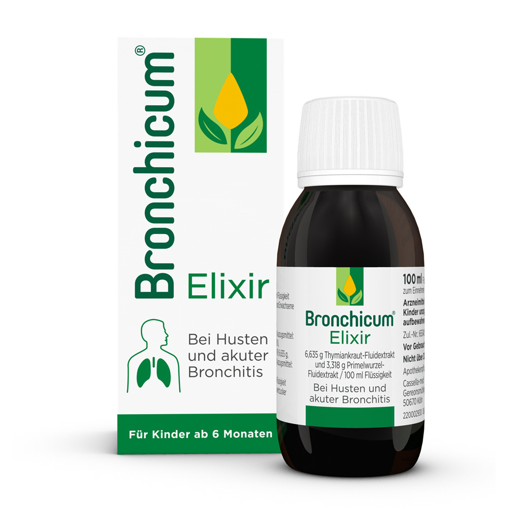 Eine akute Bronchitis kann die Lebensqualität von Betroffenen stark beeinträchtigen. Die aktuellen Husten-Leitlinien empfehlen eine symptomatische Therapie und weisen auf die Wirksamkeit von Phytopharmaka zur Reduktion der Symptomlast und Erkrankungsdauer hin. Eines der zitierten Phytopharmaka ist die Kombination aus Thymiankraut und Primelwurzel, Bronchicum®. Eine Post-hoc-Analyse der Daten zu Bronchicum Tropfen (BCUM-T05®) und Bronchicum Elixir (BCUM-E05®) aus zwei klinischen Studien bestätigt nun auch die Wirksamkeit von Bronchicum Elixir im Vergleich zu Placebo. Bereits nach wenigen Tagen zeigte sich die Symptomreduktion gegenüber Placebo signifikant: BCUM-E05 ab Tag drei morgens und BCUM-T05 ab Tag 2 zur Nacht. Bronchicum verbindet die bewährten Heilpflanzen Thymian und Primelwurzel zu einer wirksamen Kombination bei Husten und Bronchitis-Symptomen bei Erwachsenen und Kindern. Bronchicum Elixir ist bereits ab sechs Monaten zugelassen. /