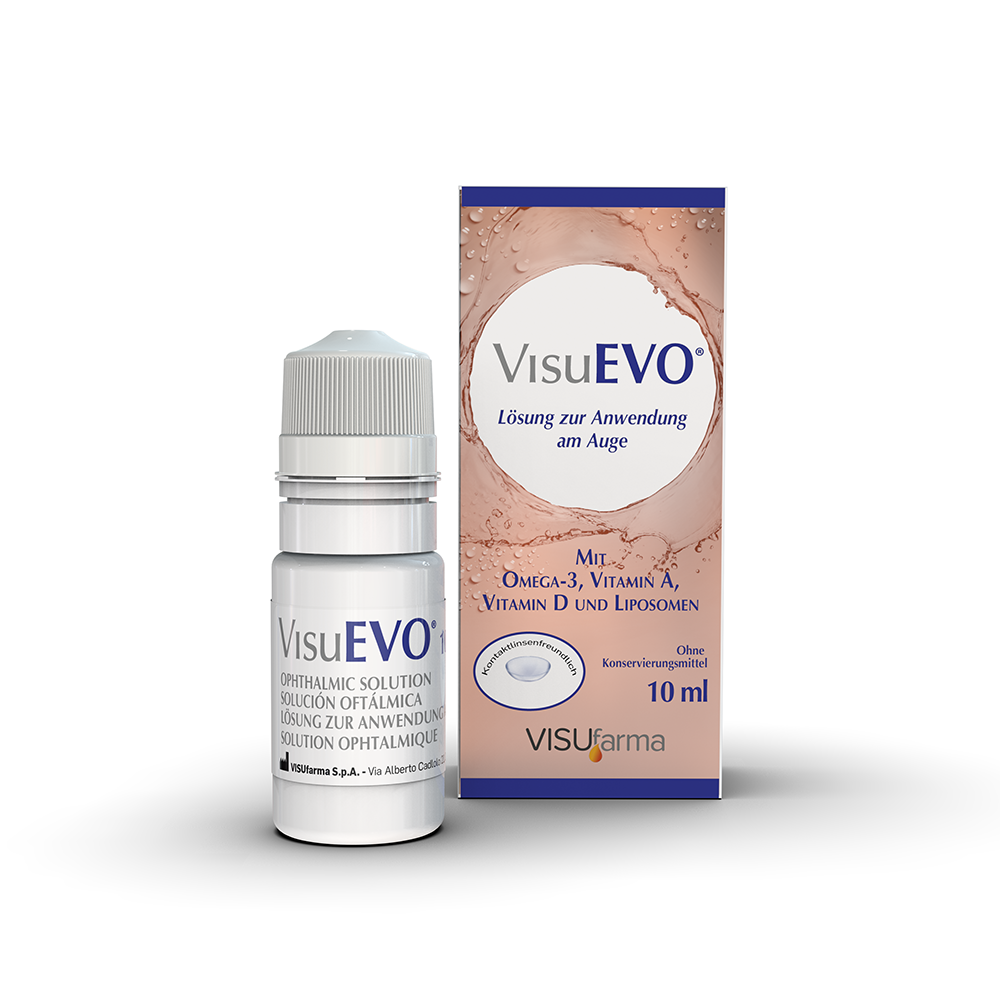 Das trockene Auge tritt in westlichen Bevölkerungen mit einer Prävalenz von etwa 10 bis 30 % auf. In klinischen Studien wiesen bis zu 86 % der Betroffenen Zeichen einer Meibom-Drüsen-Dysfunktion auf, sodass evaporative Mechanismen eine zentrale Rolle spielen. Für diese Versorgungssituation steht VisuEVO® zur Verfügung. Die lipidbasierten Augentropfen zielen auf die Stabilisierung der Lipidschicht ab und unterstützen so die Linderung der Symptome beim evaporativen trockenen Auge. VisuEVO ist als konservierungsmittelfreie 10-ml-Flasche im Novelia® Tropfersystem verfügbar. Es wird bei allen Formen des evaporativen trockenen Auges eingesetzt, um die Stabilität der Lipidschicht zu verbessern und die Verdunstung der wässrigen Phase zu reduzieren. Das Besondere: Die Lipide in VisuEVO sind biomimetisch mit der natürlichen Lipidschicht des Tränenfilms. Als Mikroemulsion verteilen sich die Augentropfen gleichmäßig auf der Augenoberfläche. Ein langanhaftender schützender Film entsteht, der nicht verschwommen sehen lässt. /