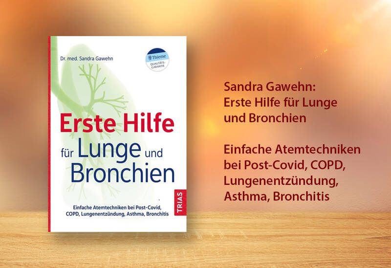 Sandra Gawehn: Erste Hilfe für Lunge und Bronchien. Einfache Atemtechniken bei Post-Covid, COPD, Lungenentzündung, Asthma, Bronchitis. Trias Verlag 2022, 176 Seiten, ISBN: 978-3-432-11644-0, EUR 19,99 Versandkostenfrei bestellen bei govi.de