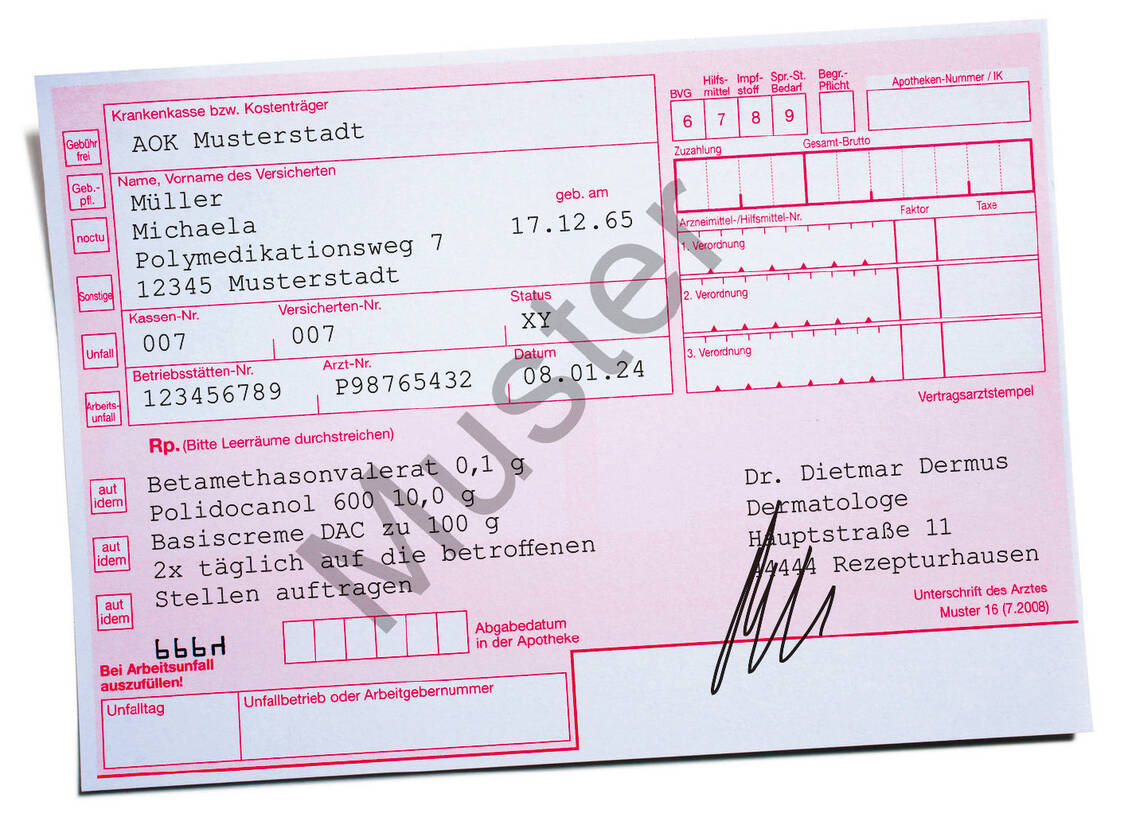 Betamethasonvalerat ist ein Glucocorticoid, das in der vierstufigen Einteilung der Wirkstärke von Extern-Corticoiden in Klasse 3 eingeordnet wird: stark wirksame Glucocorticoide. Die therapeutische Konzentration liegt bei 0,025 bis 0,15 Prozent. Die verordnete Konzentration von 0,1 Prozent ist Gabi schon häufig untergekommen. Polidocanol 600 (Lauromacrogol 400) wirkt lokalanästhetisch und juckreizstillend. Es kann auf Haut und Schleimhaut eingesetzt werden.