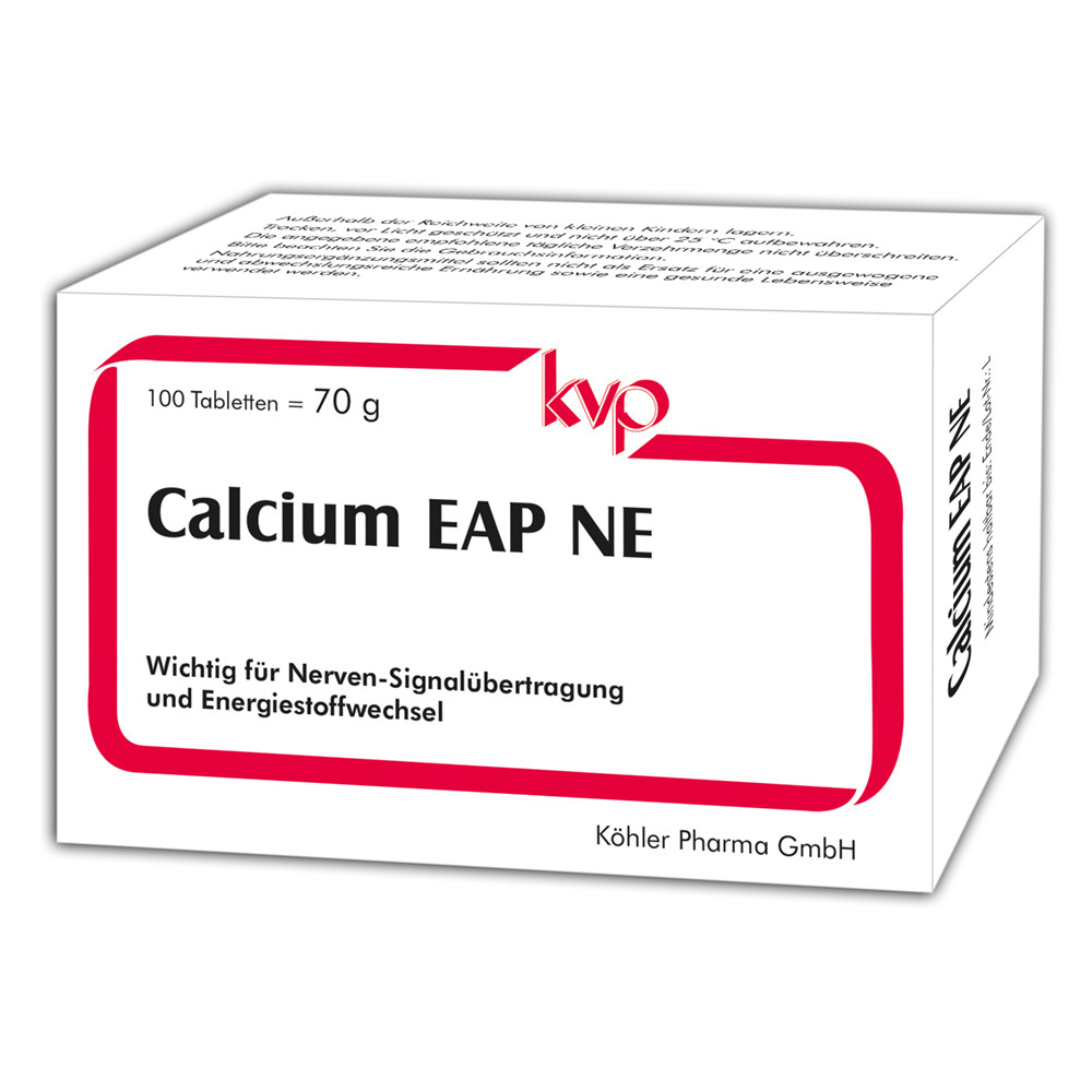 Das neue Calcium EAP NE vereint Calcium und Lecithin (Phosphatidylcholin). Eine physiologisch wichtige Eigenschaft von Phosphatidylcholinen besteht in ihrer Amphiphilie. Vor allem die Zellmembranen in den Nerven sowie im Gehirn, Herzen und Muskelgewebe verfügen über einen hohen Anteil davon. Ein Teil des Phosphatidylcholins (Cholin) wird im Körper zu Acetylcholin umgewandelt, einem wichtigen Botenstoff für Nerven und Gehirn (zum Beispiel für Gedächtnis, Konzentration und Bewegung). Calcium EAP NE enthält Ei-Lecithin. Dieses verfügt über einen mehr als doppelt so hohen Anteil an Phosphatidylcholin als Soja-Lecithin. Darüber hinaus ist sichergestellt, dass es „ohne Gentechnik“ hergestellt wurde. Drei Tabletten Calcium EAP NE enthalten 270 mg Calcium in Form einer organischen Verbindung und 930 mg Ei-Lecithin. Es ist glutenfrei, frei von Titandioxid, Fructose, Gelatine, Lactose und Hefe sowie von künstlichen Farbstoffen, laut Gesetz frei von Konservierungsstoffen und für Vegetarier geeignet. /