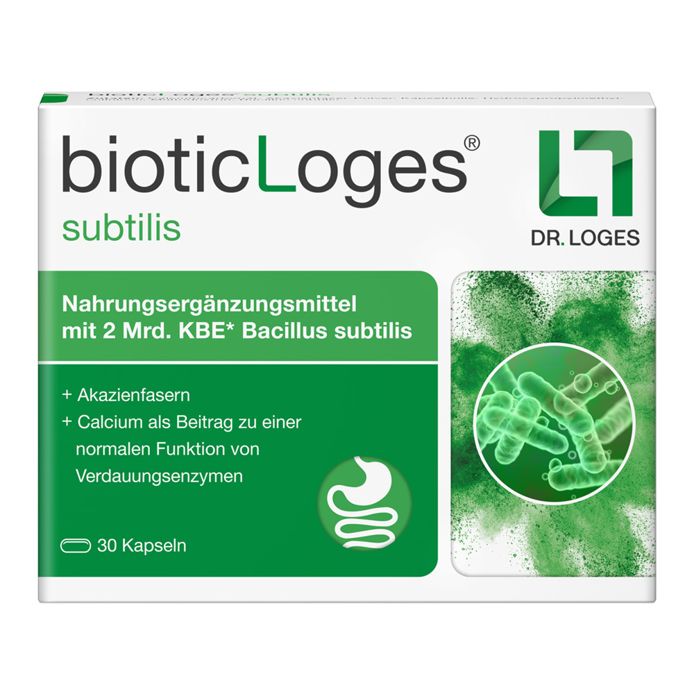 Unter anderem ungesunde Lebensgewohnheiten wie körperliche Inaktivität, Stress oder eine unausgewogene Ernährung können negative Auswirkungen auf das natürliche Darmmikrobiom haben. Das neue Nahrungsergänzungsmittel bioticLoges® subtilis von Dr. Loges vereint Bacillus subtilis, Akazienfasern und Calcium für eine gezielte, natürliche Unterstützung des Darms. Bacillus subtilis kann widerstandsfähige Sporen bilden, die selbst Hitze und Magensäure überleben. Dank dieser Robustheit gelangt es unbeschadet durch den Magen in den Darm und wird dort wieder aktiv. Bacillus subtilis kann andere nützliche Darmbakterien fördern, zur Stärkung der natürlichen Darmbarriere beitragen sowie Verdauungsprozesse begleiten. Akazienfasern dienen den guten Darmbakterien als Nahrung und unterstützen gezielt deren Wachstum. Calcium unterstützt die normale Funktion von Verdauungsenzymen. Die einfache Dosierung von bioticLoges subtilis mit nur einer Kapsel täglich lässt sich leicht in den Alltag integrieren. Das neue apothekenexklusive Nahrungsergänzungsmittel ist vegan und lactose-, gluten-, zucker- und farbstofffrei. /