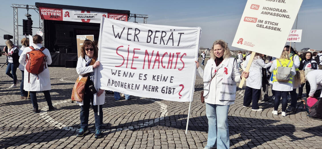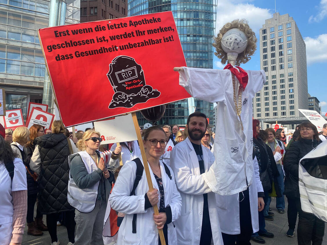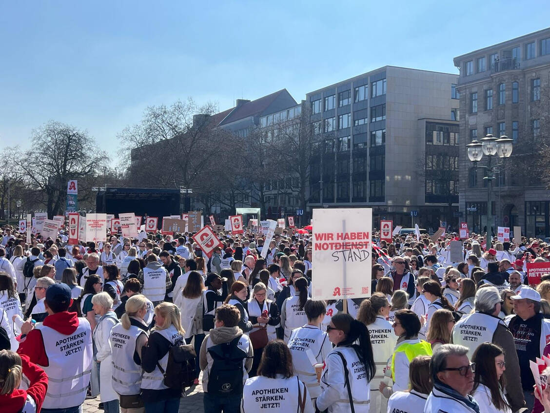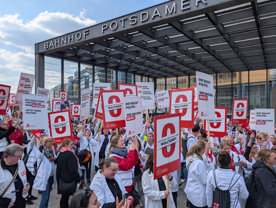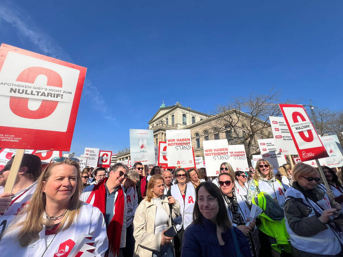 In vier Städen setzen Apothekenteams heute ein Zeichen: Berlin, Düsseldorf, Hannover und München. Auch in Fulda ist eine Versammlung geplant. Die Apotheken sind bundesweit zu Schließungen aufgerufen, die Arzneimittelversorgung wird über die notdiensthabenden Apotheken sichergestellt.