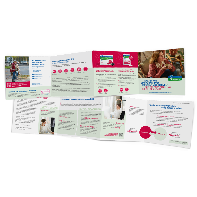 Mit der Kundenbroschüre zu Magnesium-Diasporal® Pro Muskeln und Nerven bietet Protina ein kompaktes und leicht verständliches Informationsmaterial zur Unterstützung der Beratung in der Apotheke. Entwickelt für PTAs, die ihre Kunden gezielt bei den Herausforderungen des modernen Alltags unterstützen möchten. Die Broschüre beleuchtet, welche Rolle eine ausgewogene Versorgung mit Magnesium und B-Vitaminen für unser Wohlbefinden spielen kann. Besonders das Zusammenspiel zwischen Muskulatur und Nervensystem steht dabei im Fokus: Während Magnesium zu einer normalen Muskelfunktion beiträgt, unterstützen die Vitamine B1, B2, B6 und B12 eine normale Funktion des Nervensystems. Magnesium-Diasporal® Pro Muskeln und Nerven ist in zwei Darreichungsformen erhältlich: