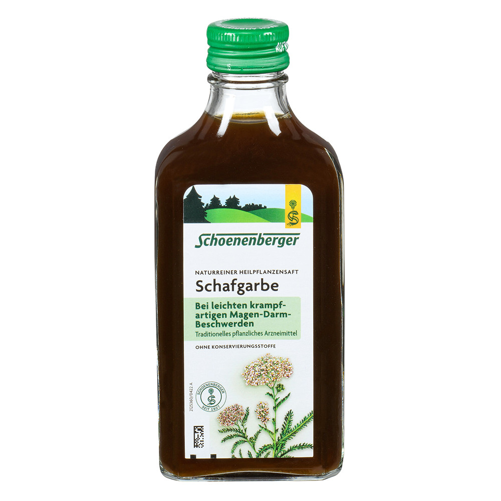 Schafgarbe zählt zu den traditionsreichsten Heilpflanzen Europas und wird seit Jahrhunderten bei Beschwerden im Magen-Darm-Bereich eingesetzt. Die Blüten und das Kraut enthalten ätherische Öle unter anderem mit Cineol und Proazulenen. Diese tragen zu den krampflösenden, entzündungshemmenden und antibakteriellen Eigenschaften der Pflanze bei. Zudem kann Schafgarbe die Gallensekretion anregen und so die Verdauung unterstützen. Traditionell wird die Pflanze bei Beschwerden der Verdauungsorgane eingesetzt – etwa bei Blähungen, Durchfällen oder krampfartigen Schmerzen. Auch bei Appetitlosigkeit kann sie unterstützend wirken. Der Schoenenberger Heilpflanzensaft aus frischem Schafgarbenkraut knüpft an diese traditionelle Anwendung an. Als pflanzliches Arzneimittel wird er bei leichten krampfartigen Magen-Darm-Beschwerden eingesetzt und bietet eine natürliche Unterstützung für das Wohlbefinden im Alltag. /