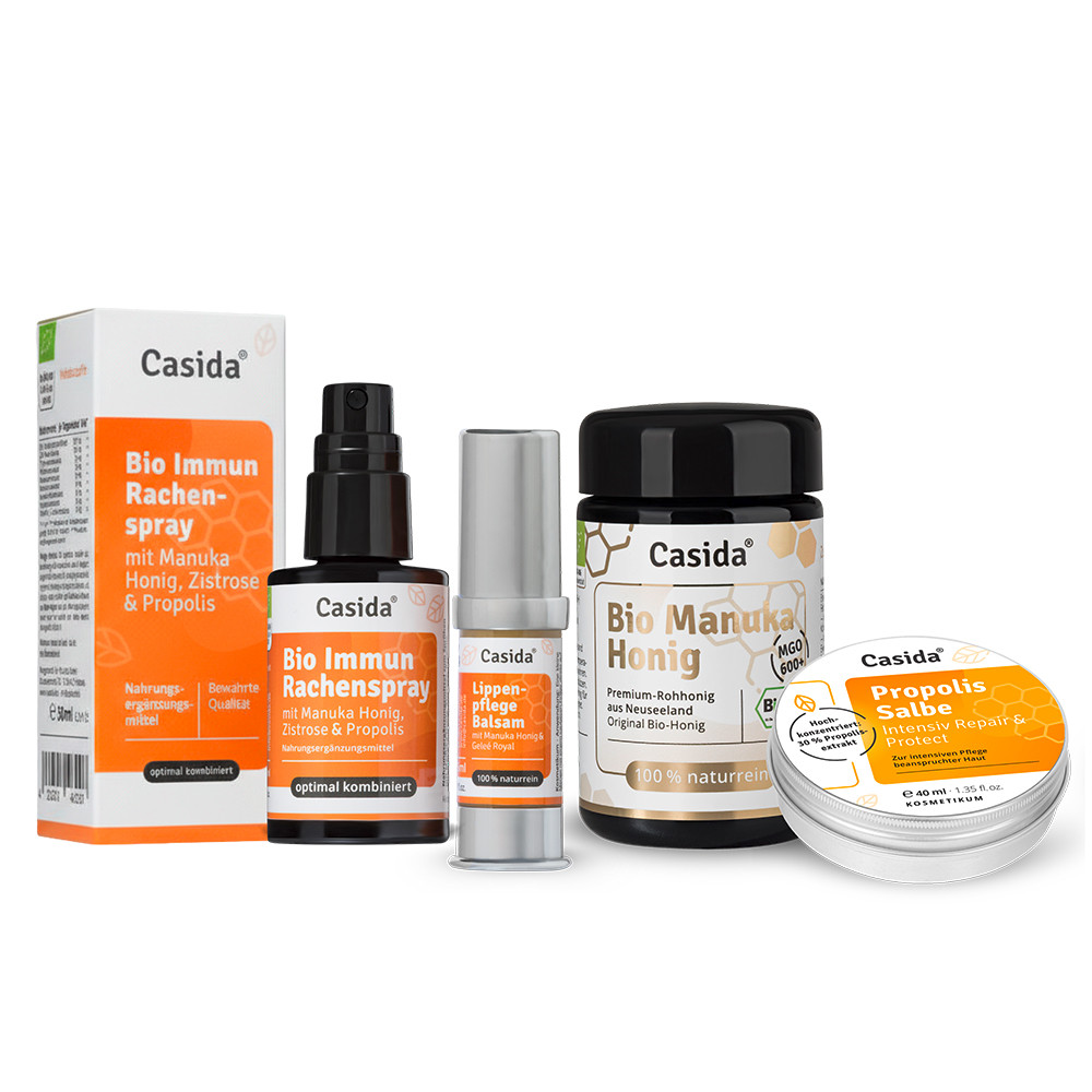 Eine neue Produktreihe mit den bewährten natürlichen Inhaltsstoffen Propolis und Bio Manuka Honig erweitert das Sortiment von Casida. Die vier Produkte vereinen die Kraft traditioneller, natürlicher Inhaltsstoffe mit moderner Qualitätssicherung. Der Manuka Honig in Bio-Qualität aus Neuseeland zeichnet sich durch seinen hohen MGO-Gehalt von 600+ (Methylglyoxal) aus. Alle Produkte sind naturrein ohne unerwünschte Zusatzstoffe. Die hochwertige Produktlinie umfasst: Bio Immun Rachenspray mit Manuka Honig, Zistrose & Propolis, Propolis Salbe Intensiv, Lippenpflege Balsam mit Manuka Honig & Gelée Royal und reinem Bio Manuka Honig MGO 600+. Die neue Bienen-Produktreihe bietet Heilpraktikern, Apothekern und naturheilkundlich Interessierten eine wertvolle Ergänzung zu bestehenden Therapiekonzepten. Durch die Kombination von Tradition und moderner Forschung richtet sich Casida an Anwender, die auf naturreine, gut verträgliche und nachhaltige Produkte setzen. /