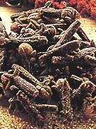 Bei der Droge Flores Caryophylli handelt es sich um die noch nicht geöffneten Blütenknospen des Baumes Syzygium aromaticum. Der Baum wächst bis zu 20 Meter hoch und ist immergrün. Er zählt nicht etwa zur Familie der Nelkengewächse (Caryophyllaceae) - ein gefürchteter Fallstrick in der Drogenkunde-Prüfung! -, sondern zu den Myrtengewächsen (Myrtaceae). Der Baum war zunächst auf den zu Indonesien gehörenden Molukken-Inseln beheimatet, gedeiht heute aber weltweit im feuchtwarmen Klima tropischer Küsten. Zu Kolonialzeiten zählte auch die Insel Sansibar des Deutschen Reiches mit zu den Produzenten qualitativ besonders hochwertiger Gewürznelken. Doch tauschten die Deutschen 1890 die fruchtbare Insel gegen das in der Nordsee gelegene unwirtliche Helgoland ein. Als Trost für diesen militärstrategisch bedingten Umzug erhielten alle Beamten goldene Krawattennadeln in Form einer Gewürznelke!