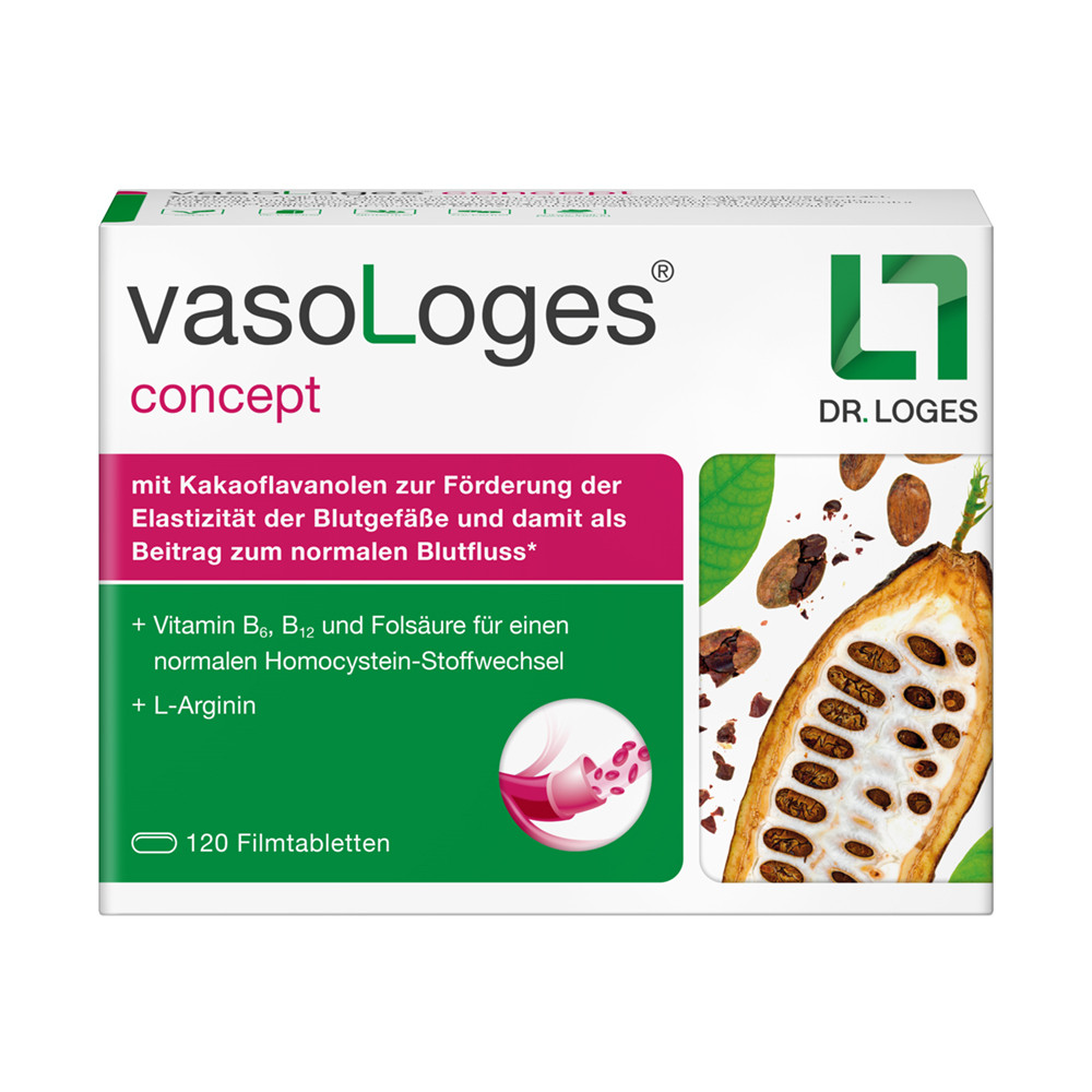 Kälte kann für das kardiovaskuläre System eine Belastung darstellen und insbesondere bei vorbelasteten Personen und Risikogruppen gesundheitliche Risiken verschärfen. Mit vasoLoges® concept bietet Dr. Loges ein einzigartiges Präparat zur Unterstützung der Gefäßgesundheit an. Enthalten sind hochwertiges L-Arginin und Kakaoflavanole. L-Arginin gilt als unmittelbares Substrat der endothelialen Stickstoffmonoxid-Synthase (eNOS) und kann die NO-Bioverfügbarkeit beeinflussen. Die Zufuhr von Kakaoflavanolen kann die Elastizität der Blutgefäße fördern, was zu einem normalen Blutfluss beiträgt. Ebenfalls enthalten sind die Vitamine B6 und B12 sowie Folsäure. Die Nährstoffe spielen eine Rolle im Homocysteinstoffwechsel, der für eine normale Endothelfunktion entscheidend sein kann. Weitere Inhaltsstoffe sind ebenfalls an Prozessen beteiligt, die für die Blutgerinnung (Vitamin K) beziehungsweise die Aufrechterhaltung eines normalen Blutzuckerspiegels (Chrom) wichtig sind. vasoLoges concept ist vegan, laktose-, gluten- sowie zuckerfrei und somit auch für Diabetiker geeignet. /