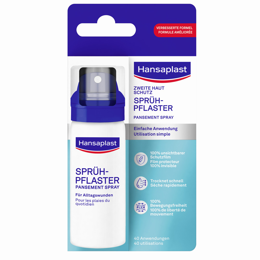 Weitermachen trotz Kratzer, Schnitt- oder Schürfwunden? Hansaplast bietet hierfür die passende Lösung: Mit dem Zweite Haut Schutz Sprüh-Pflaster werden Wunden dank des praktischen Formats ganz einfach geschützt. Ideal für zu Hause, beim Sport oder bei Outdoor-Aktivitäten. Die verbesserte Formel basiert auf drei zentralen Bestandteilen. Ethylcellulose bildet dabei einen schützenden, wasserfesten Film. Dank Glycerin und Rizinusöl bleibt der Schutzfilm flexibel und hält auch an viel bewegten Körperstellen sicher. Durch die einfache Anwendung mit nur einer Hand lässt sich das Produkt auch an schwer erreichbaren oder schwer zu versorgenden Stellen problemlos auftragen – ein angenehmes Tragegefühl wie eine zweite Haut. Nach dem Reinigen und Trocknen der Wunde das Spray gut schütteln und einen dünnen Film aus 5–10 cm Entfernung aufsprühen. Anschließend kann das Pflaster trocknen und die Anwendung bei Bedarf wiederholt werden. Der Pflasterfilm löst sich mit der Zeit von selbst auf. /