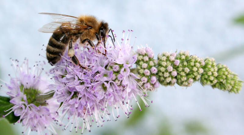 Weiter zum Beet »Ätherische Öle«. Dort ist mächtig Insekten-Betrieb, kein Wunder, bieten doch die Pfefferminze, Lavendel, Thymian und Co. derzeit beste Geruchs- und Pollenbedingungen. Ihren lieblich-würzigen Duft verströmen die Pflanzen aus reinem Kalkül. Mit ihrem Duft locken sie Bienen und andere Insekten an, um sich bestäuben zu lassen. Weiß blühende Pflanzen wie die Polei-Minze oder die Bittere Schleifenblume duften oft intensiv – um so quasi ihre unauffällige Farbe zu kompensieren.