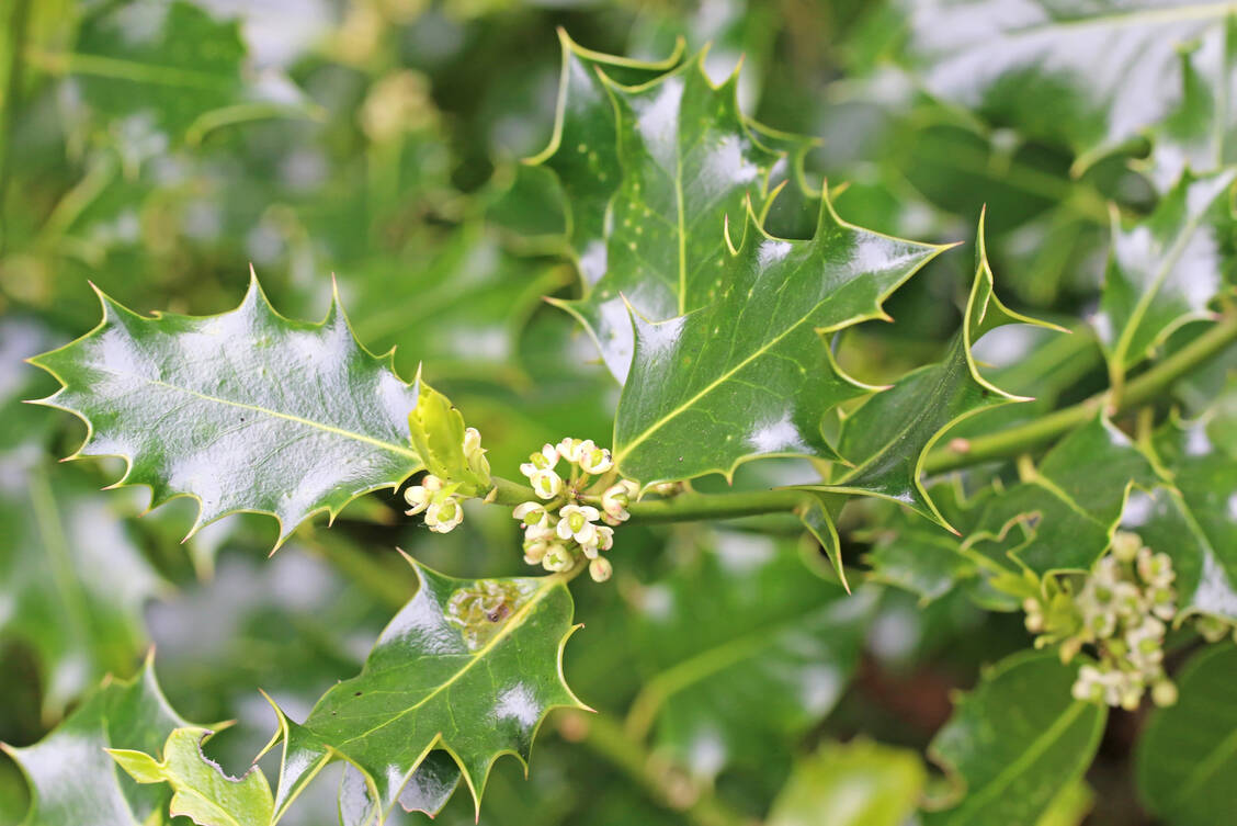 • Blätter: immergrün, ledrig, stachelig gezähnt