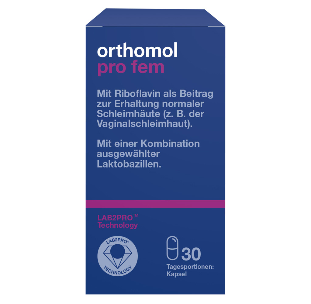 Beim neuen Orthomol Pro fem handelt es sich um ein Nahrungsergänzungsmittel mit Laktobazillen und Riboflavin. Die fünf spezifischen Laktobazillenstämme unterstützen die Vaginalflora; Riboflavin trägt zur Erhaltung normaler Schleimhäute, zum Beispiel der Vaginalschleimhaut, bei. Die LAB2PROTM-Technologie sorgt für die Stabilität der Kulturen bei Lagerung und Transport und schützt die Laktobazillen vor Magen- und Gallensäure. Orthomol Pro fem ist ab Mitte Mai 2026 verfügbar. /